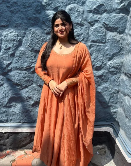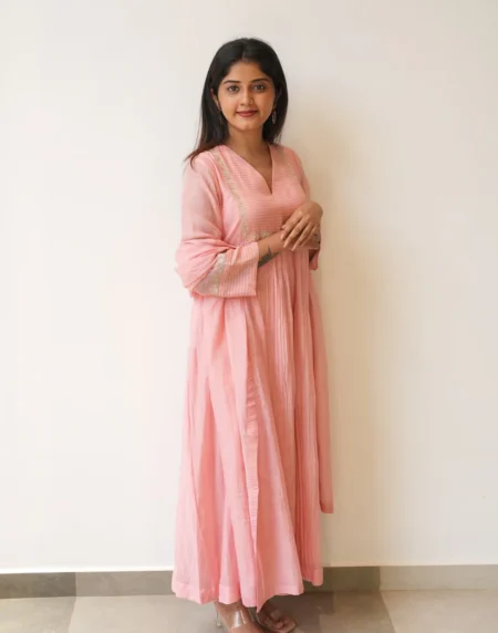 Elevate your style with this elegant Mul Chanderi anarkali and dupatta set
