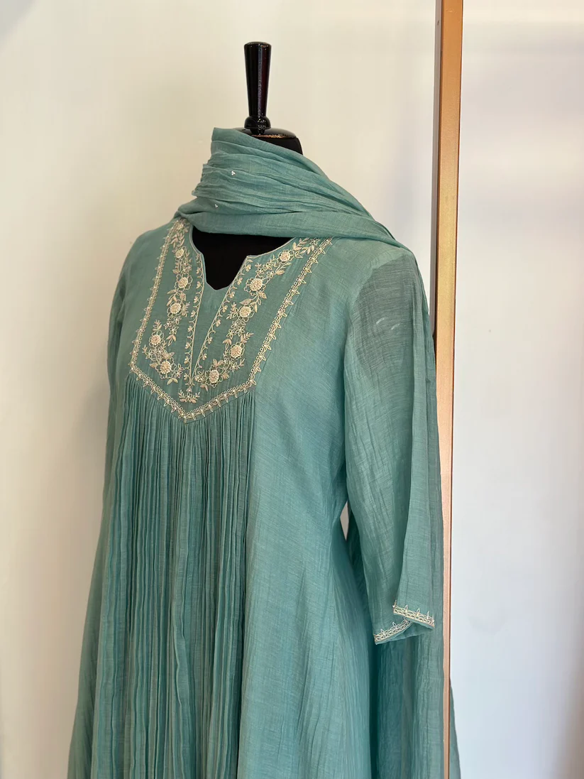 Fabric: Mul Chanderi (kurta and dupatta) Santoon (bottom)